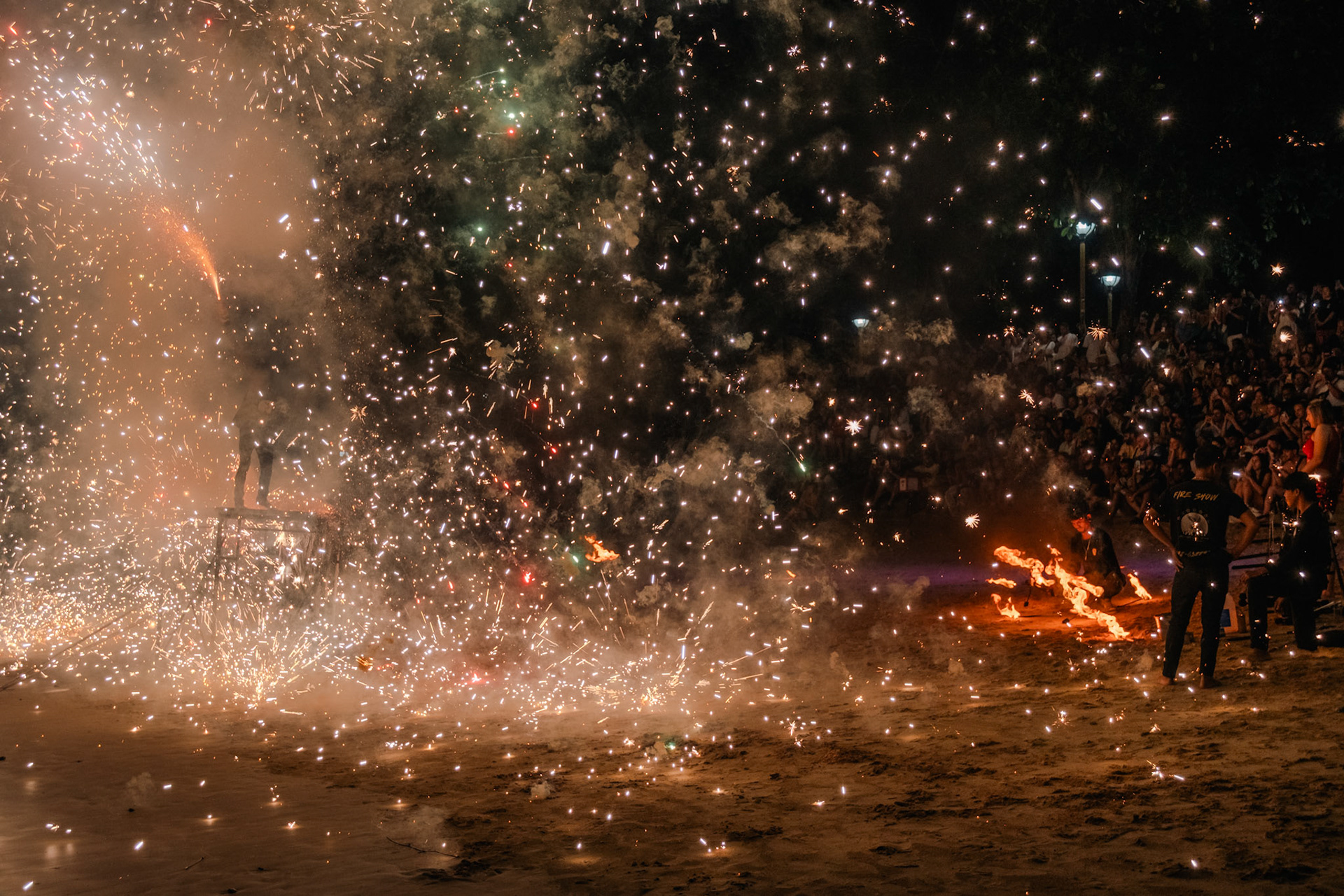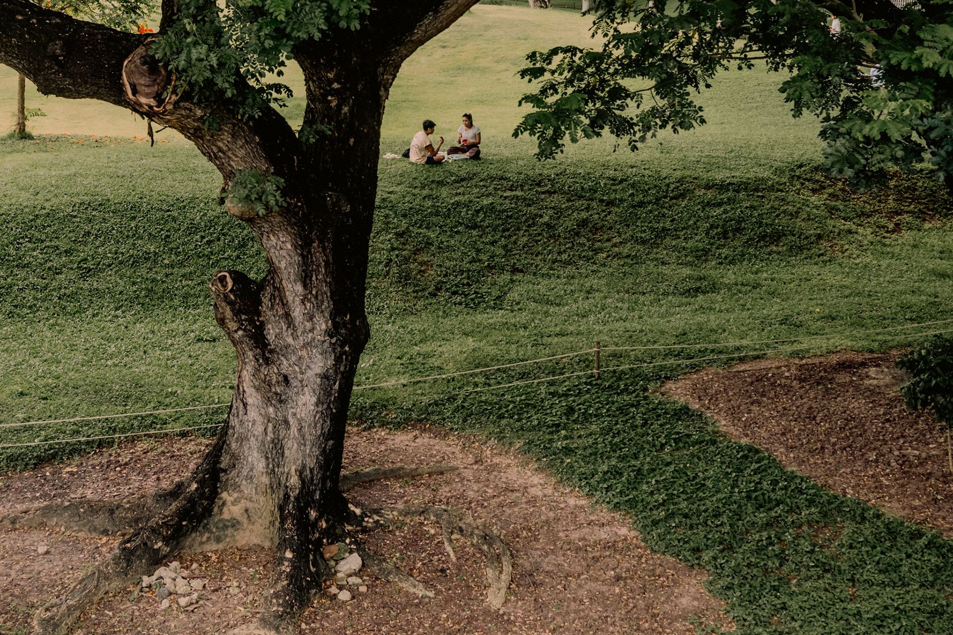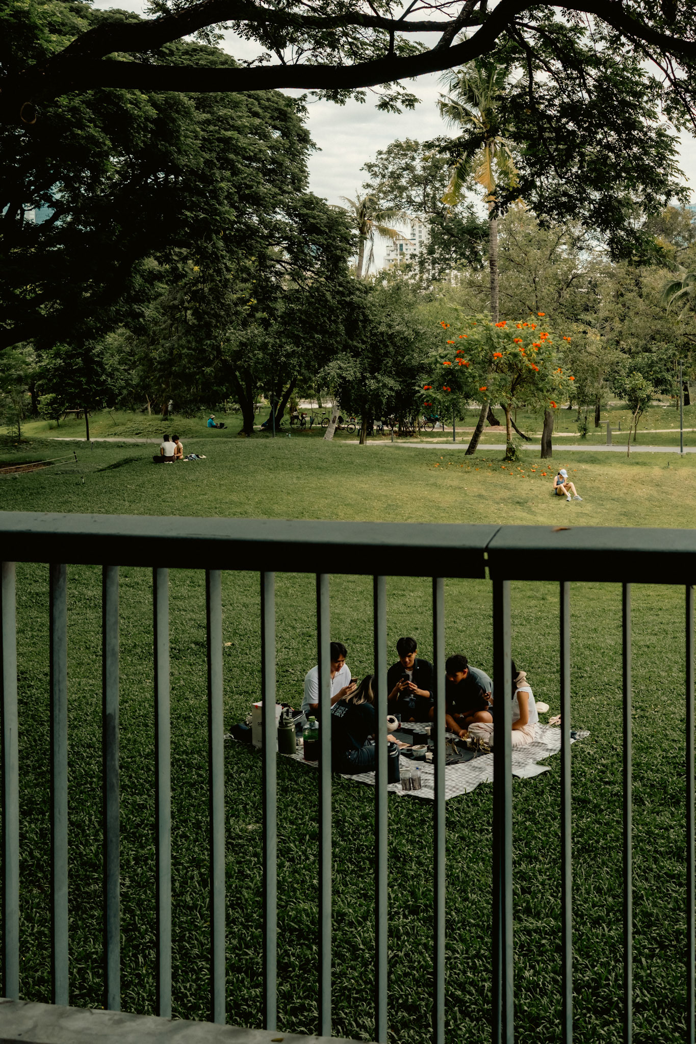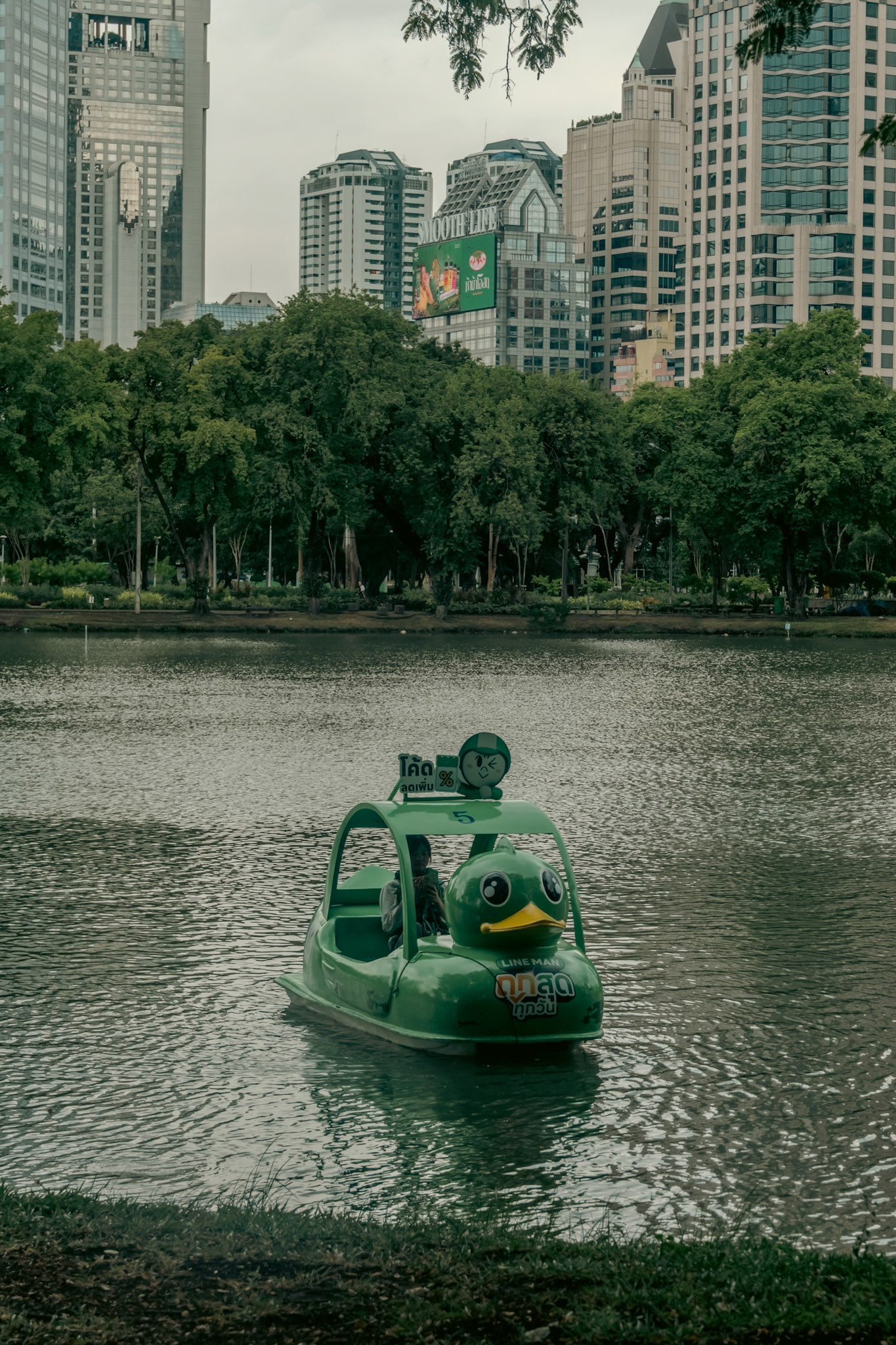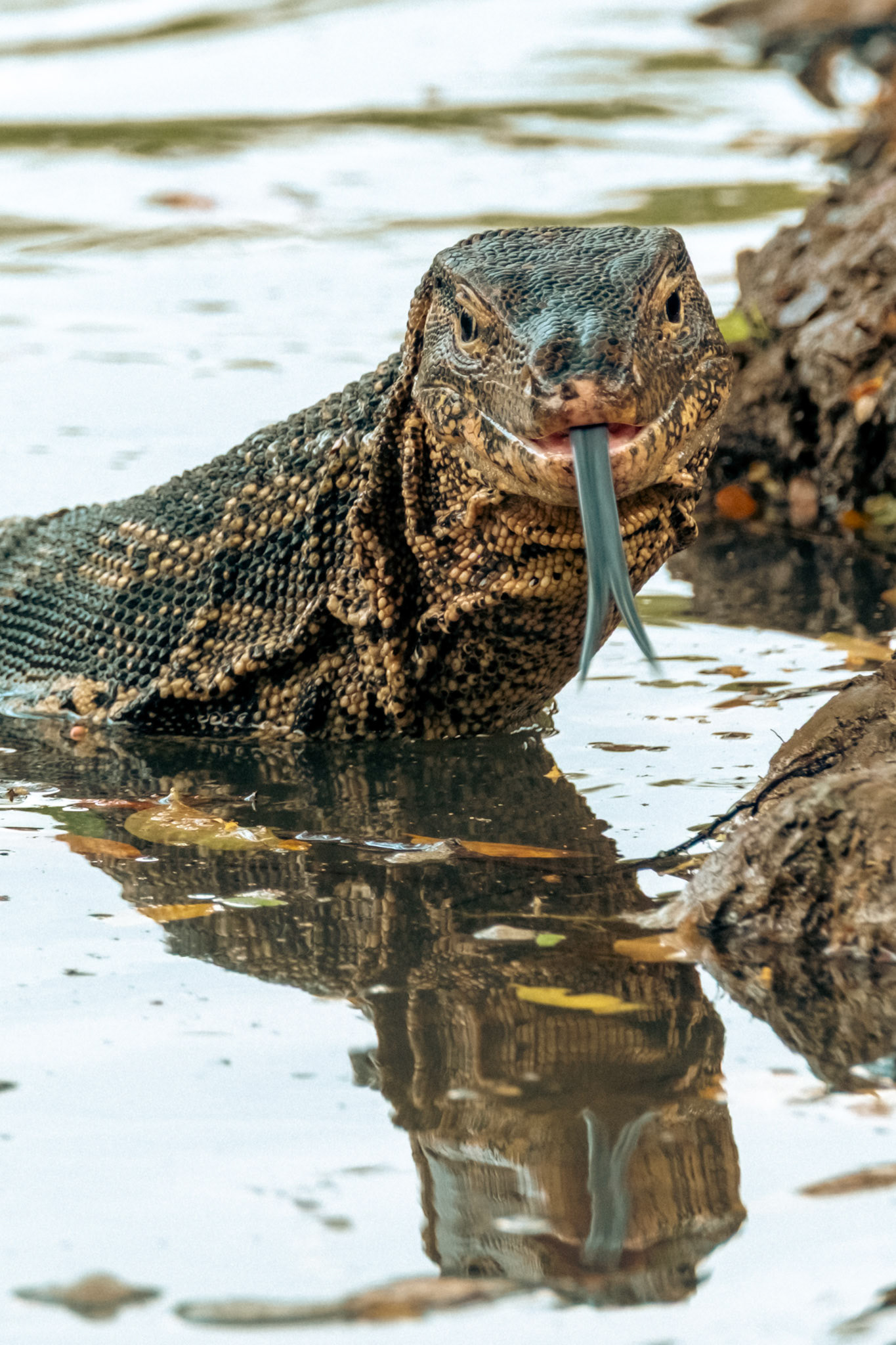 Water Monitors fight for a fish in Lumphini Park as people walk by.