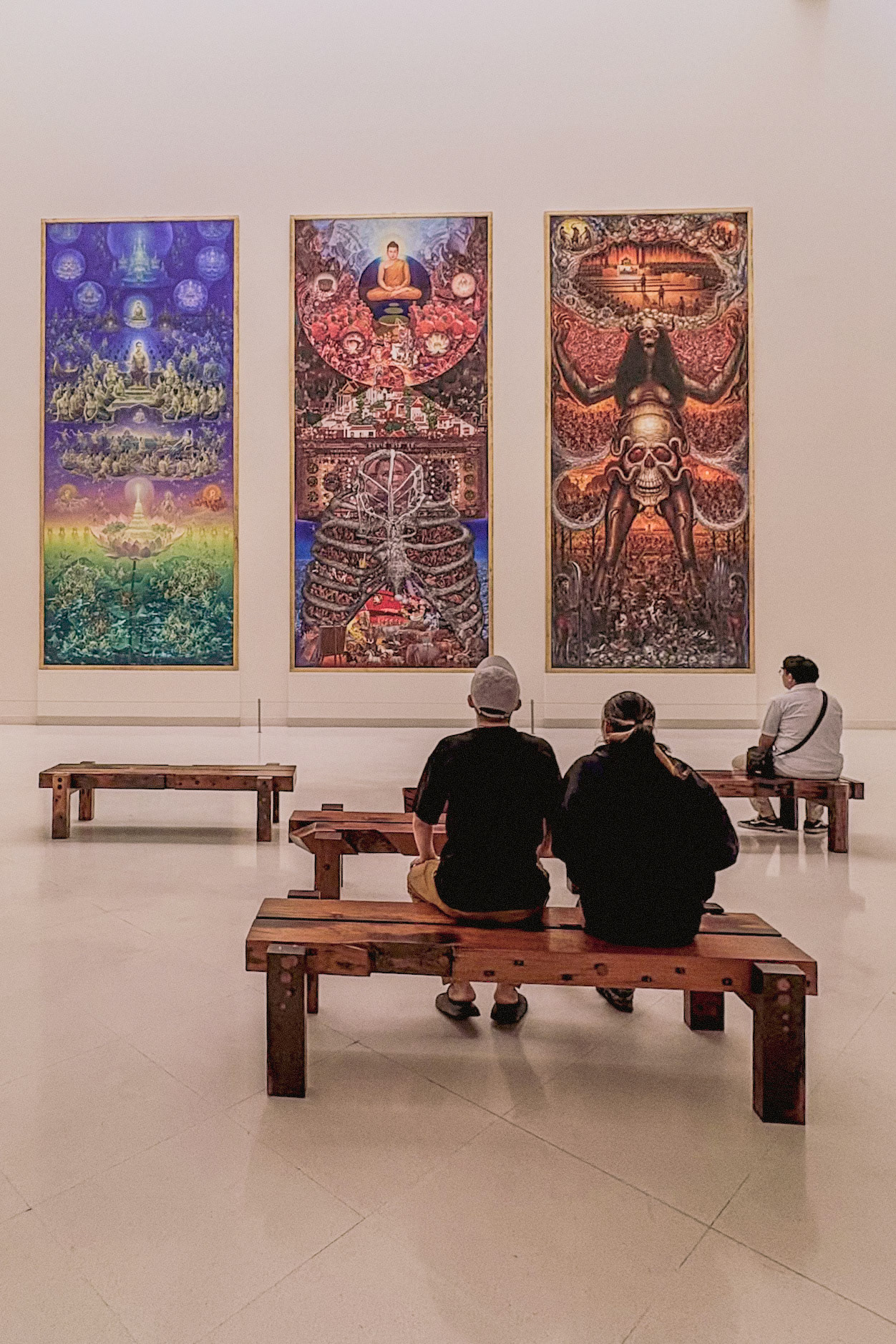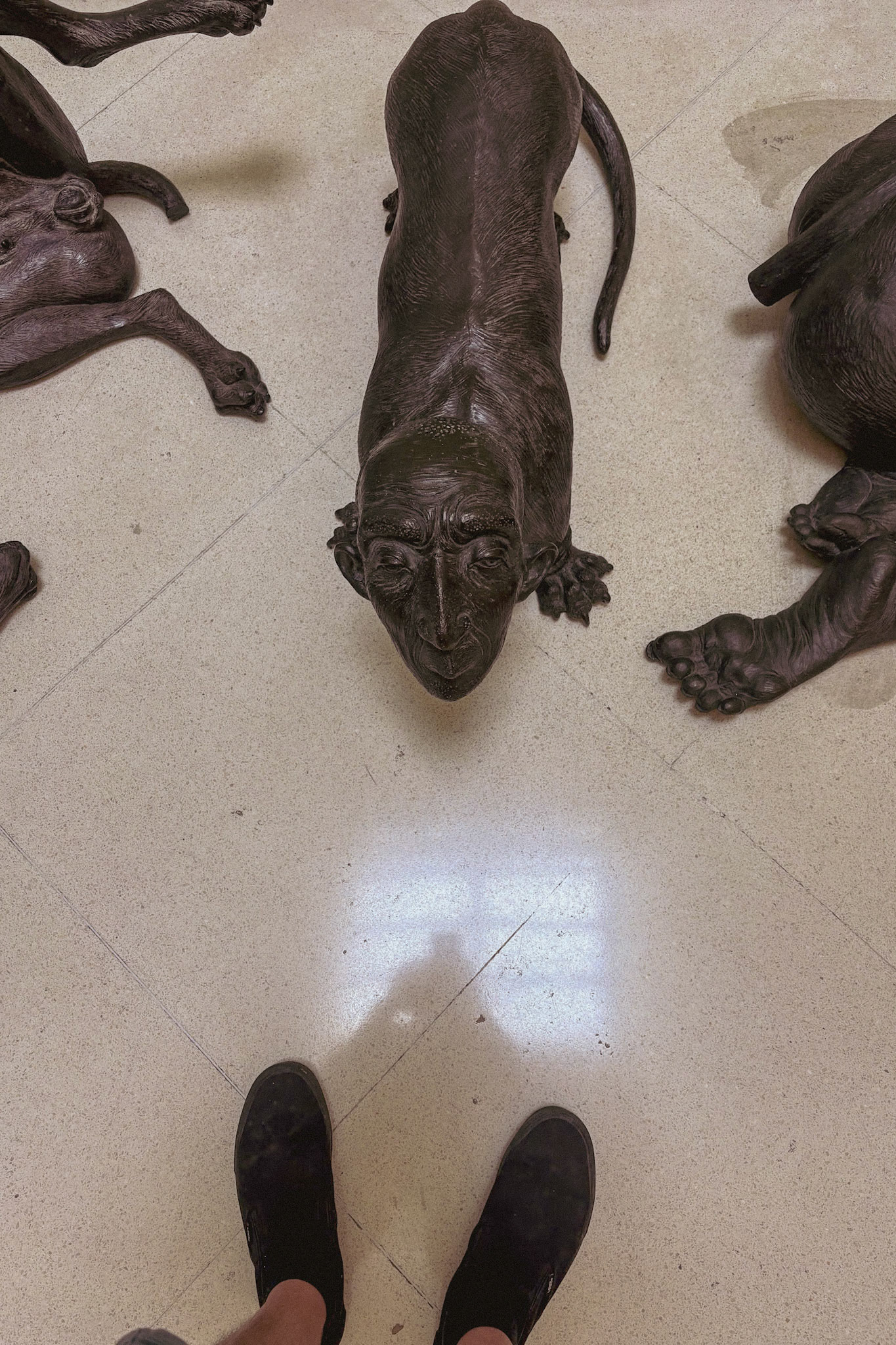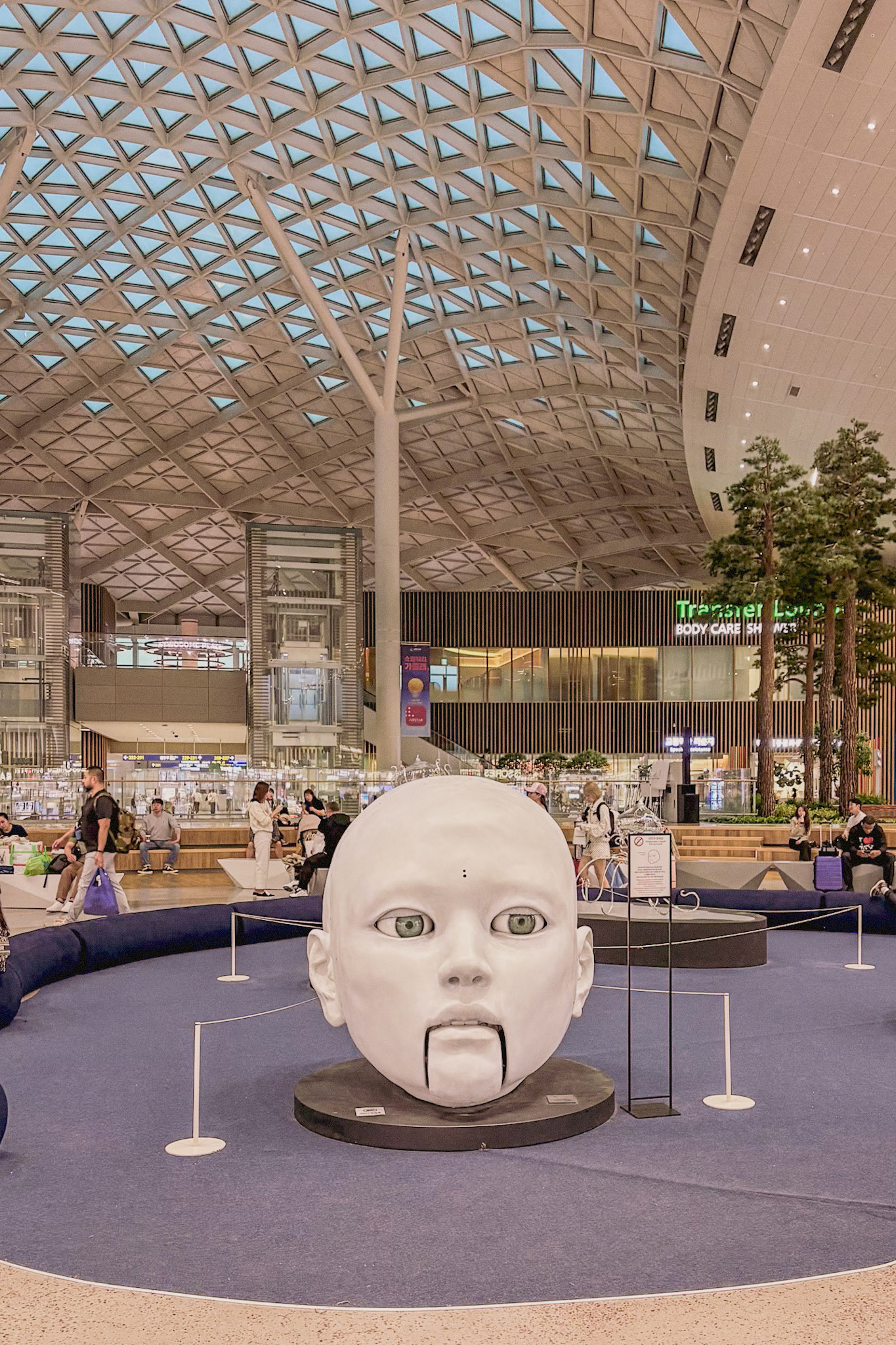 Visitors can walk up and chat with the AI housed inside these giant sculptural heads at Incheon International Airport in South Korea.