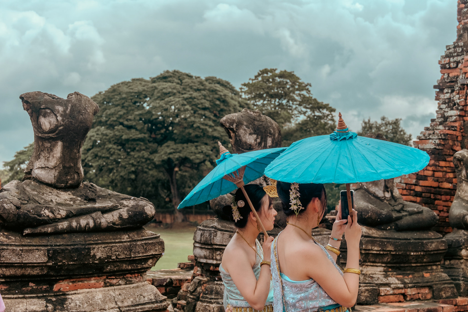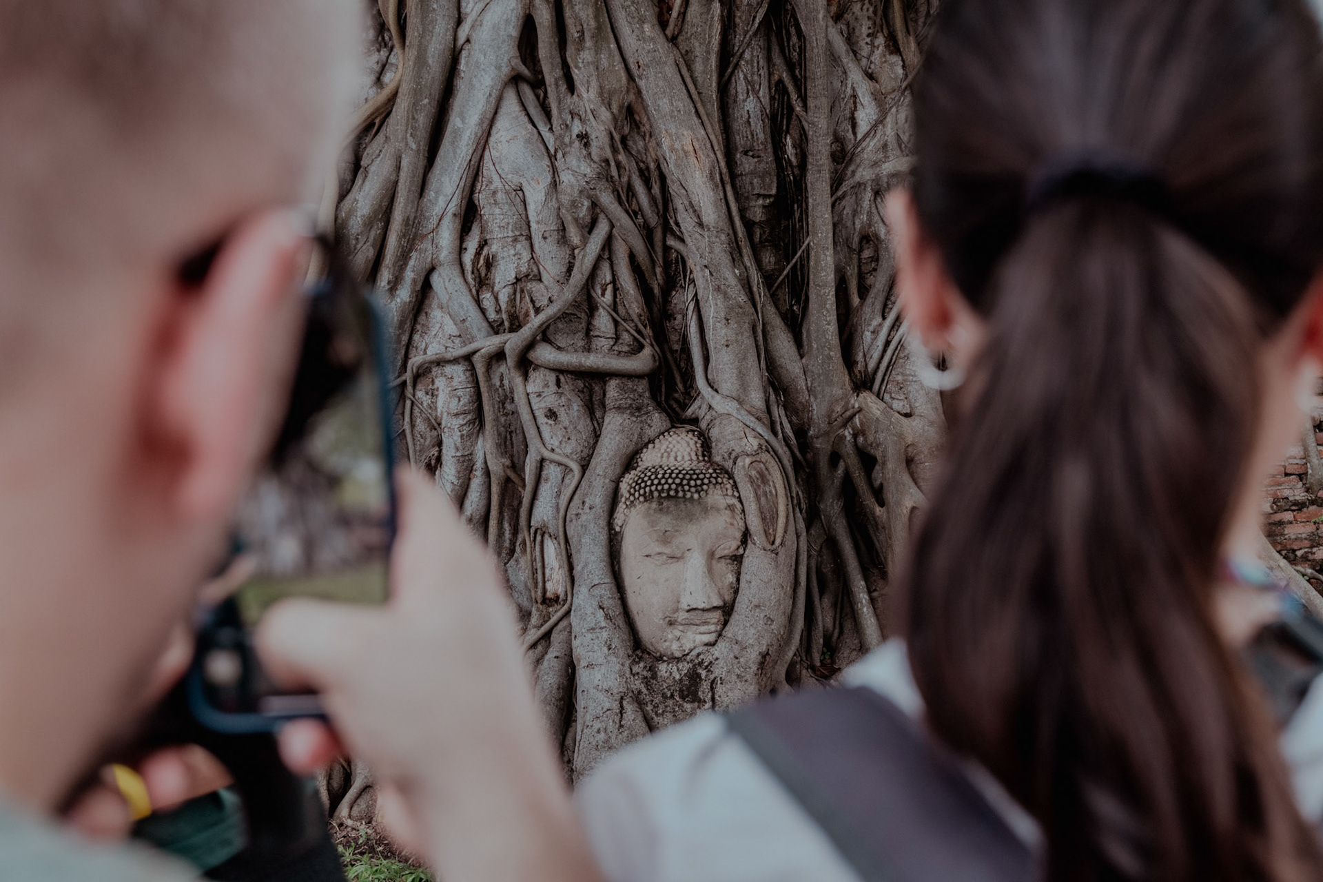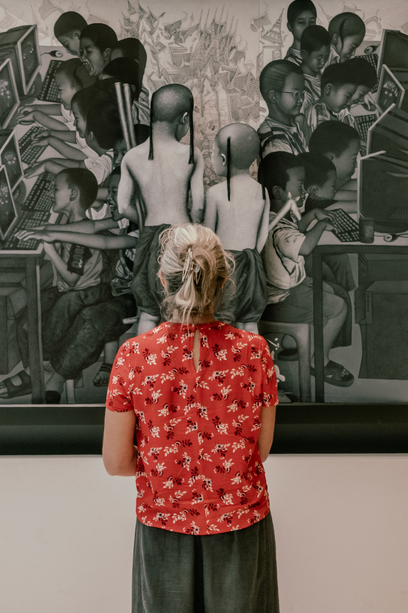 Visitors can walk up and chat with the AI housed inside these giant sculptural heads at Incheon International Airport in South Korea.